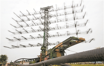 操作方艙內(nèi),各號(hào)手屏氣凝神。“方位××,距離××,發(fā)現(xiàn)目標(biāo)!”參謀人員迅速報(bào)告“敵情”。話音未落,“敵”機(jī)對(duì)地面雷達(dá)釋放強(qiáng)電磁干擾,并伺機(jī)向陣地逼近。