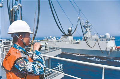 “命令你艦前往某海域,為衡水艦進(jìn)行油水補(bǔ)給!”處置完浮雷險(xiǎn)情,青海湖艦又接到新的命令。官兵立即調(diào)整航向,向目標(biāo)海域高速機(jī)動(dòng)。抵達(dá)后,一系列海上補(bǔ)給作業(yè)緊張有序展開,兩艦之間凌空架起承載索,建立補(bǔ)給連接,順利完成補(bǔ)給任務(wù)。
