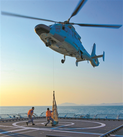 艦載直升機(jī)實(shí)施垂直補(bǔ)給。