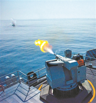 艦炮對(duì)浮雷進(jìn)行射擊。