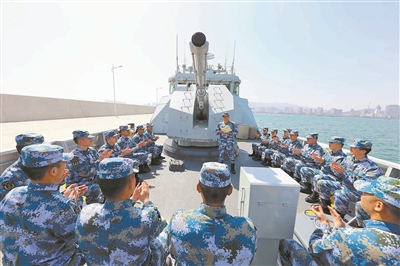 3月24日,海軍某護(hù)衛(wèi)艦支隊(duì)信陽(yáng)艦開(kāi)展“讀黨史 頌黨恩”討論交流活動(dòng),引導(dǎo)官兵感悟初心使命、汲取精神力量。王光杰 攝