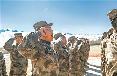 第三天,車隊盤山而上,似在云海間穿行。駛過數(shù)不清的彎道,到達(dá)海拔5200多米的界山達(dá)坂后,官兵進(jìn)行短暫休整。費(fèi)騰喘著粗氣,爬上界山之巔。俯瞰錦繡邊關(guān),他的胸中豪情涌動:“70多年前,爺爺抗美援朝、保家衛(wèi)國;70多年后,我來到雪域高原、衛(wèi)國戍邊?!?/p>