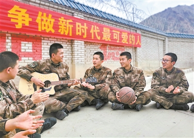 休息時間,費(fèi)騰為戰(zhàn)友們彈奏吉他。