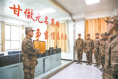 新兵們參觀機(jī)房,了解紅山河機(jī)務(wù)站光輝歷史。