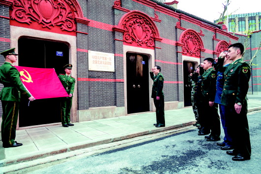 圖為上海軍事法院全體黨員在中共一大會(huì)址前重溫入黨誓詞。 倪宇浩 攝