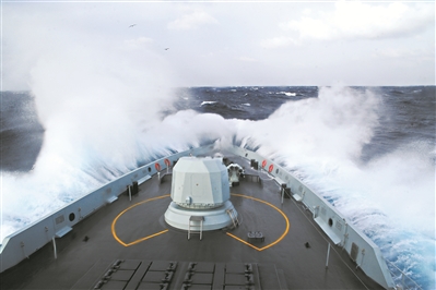 戰(zhàn)艦劈波斬浪,高速機動。