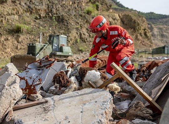 圖為搜救犬協(xié)同官兵進(jìn)行搜索。