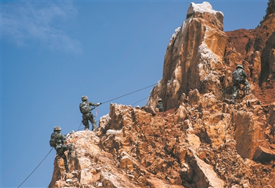 攀爬荒山追捕“暴恐分子”。