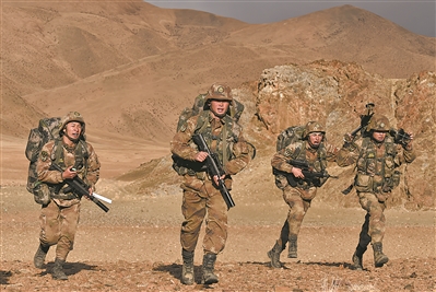 官兵負(fù)重長途奔襲。