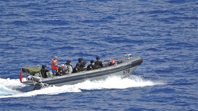 揚州艦隨即派出兩艘小艇,搭載陸戰(zhàn)隊員抓住稍縱即逝的戰(zhàn)機,隱蔽出擊。同時,艦艇火力支援組進行火力壓制,直升機空中掩護組在商船尾部繞飛,攻心喊話組持續(xù)實施攻心喊話。在各方密切配合下,水面突擊組成功控制商船,武力營救商船任務(wù)圓滿完成。