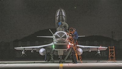 “云層較厚,合理分配注意力!”飛行大隊(duì)長王雄率隊(duì)出擊,奔赴預(yù)定空域。戰(zhàn)機(jī)在漆黑如墨的海天之間,劃出一道道亮麗航線。