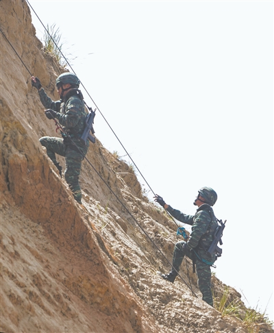 攀爬山崖圍剿“暴恐分子”。