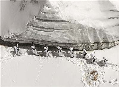 偵察隊(duì)員不懼困難,向冰川地帶徒步行軍。