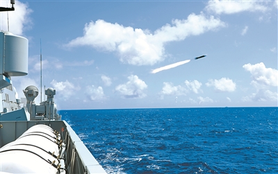 緊隨其后,各艦副炮系統(tǒng)對(duì)“敵”目標(biāo)實(shí)施補(bǔ)充打擊。海上“敵”情剛剛消除,空中威脅又不期而至。判別來(lái)襲目標(biāo)后,各艦立即發(fā)射干擾彈,同時(shí)進(jìn)行戰(zhàn)術(shù)機(jī)動(dòng),成功規(guī)避來(lái)襲導(dǎo)彈。