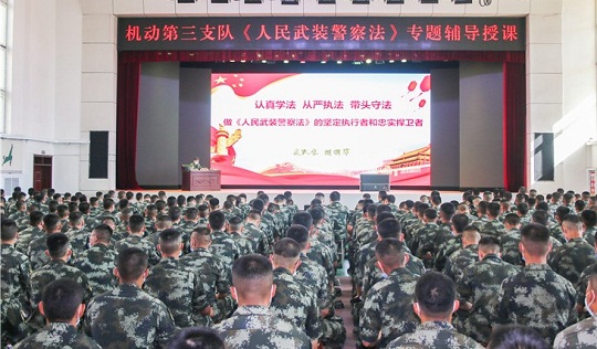 ——修訂出臺人民武裝警察法,構(gòu)建武裝警察政策制度體系基本框架。人民武裝警察法是新時代武警部隊履行職責(zé)使命的基本法律,為構(gòu)建武裝警察政策制度體系確立基本依據(jù)。新的武警法明確武警部隊建設(shè)發(fā)展的指導(dǎo)思想,調(diào)整武警部隊領(lǐng)導(dǎo)指揮體制,拓展武警部隊職能使命,構(gòu)建新型武警部隊組織指揮制度,為建設(shè)強大的現(xiàn)代化武裝警察部隊、維護國家安全和社會穩(wěn)定提供了堅強法律保障。