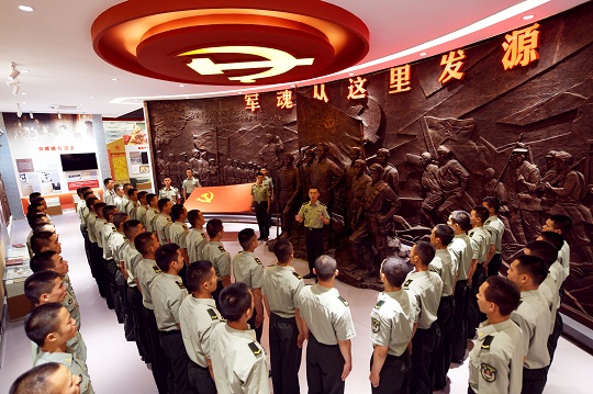 陸軍第83集團軍某旅“紅一連”,這個從秋收起義的戰(zhàn)火硝煙中走來的連隊,在“三灣改編”時,由毛澤東同志親自組織發(fā)展6名新黨員,建立了全軍第一個連隊黨支部,開創(chuàng)“支部建在連上”的先河,被譽為“軍魂發(fā)源的地方”。