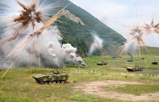 一陣尖銳的戰(zhàn)斗警報中,一場實戰(zhàn)化背景下全員全裝戰(zhàn)斗演練再次打響。鐵甲轟鳴,濃煙滾滾。行軍途中,“紅一連”官兵接連成功處置多個敵情,提前30分鐘齊裝滿員到達預(yù)定集結(jié)地域。