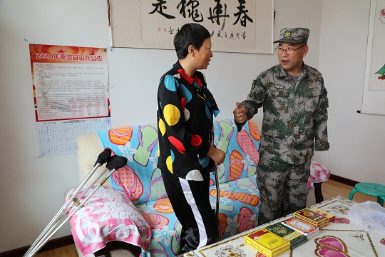 李小花患有內(nèi)風(fēng)濕病,雙腳行動不方便,張洪峰每次下鄉(xiāng)到師山村都會看望她,鼓勵她要堅強(qiáng)生活。李小花說,張政委身體有殘疾,他更能理解我的病痛,他的鼓勵更親切,讓我對生活樹立了信心。