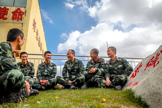 圖為楊富祥在海拔4868米的執(zhí)勤七中隊(duì)2號(hào)哨跟戰(zhàn)士們一起談心。楊浩 攝