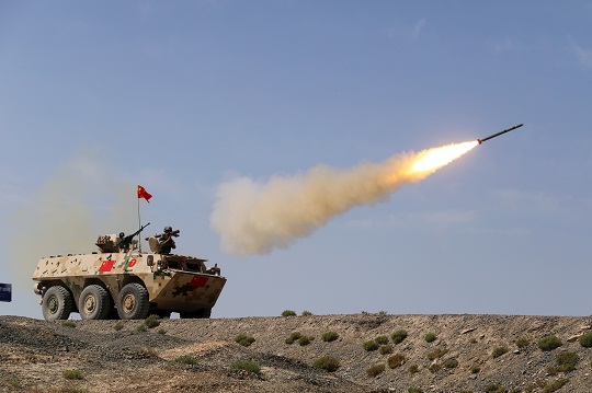 圖為中國(guó)參賽隊(duì)員在戰(zhàn)車上發(fā)射便攜式防空導(dǎo)彈。張嘉成 攝