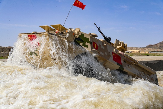 圖為中國(guó)參賽車組通過(guò)涉水場(chǎng)。姜東坡 攝