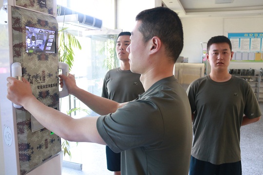 圖為官兵利用“智慧訓(xùn)練系統(tǒng)”進行體質(zhì)測試。上官明 汪學(xué)潮 攝