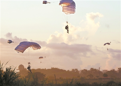 先遣隊(duì)員準(zhǔn)確傘降至預(yù)定地域。