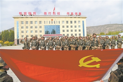 鐵心向黨,勇?lián)厝?。官兵們面向黨旗莊嚴(yán)宣誓。