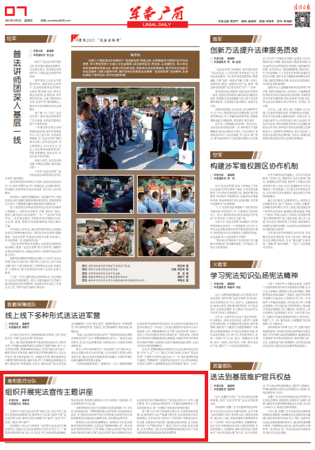 為做好維和官兵執(zhí)行任務(wù)期間合法權(quán)益保障工作,分隊(duì)還與西部戰(zhàn)區(qū)第一軍事檢察院建立協(xié)作機(jī)制,利用遠(yuǎn)程會(huì)議系統(tǒng),對(duì)可能涉及到的涉外醫(yī)療糾紛管轄、法律責(zé)任劃分承擔(dān)和維和官兵家庭涉法問(wèn)題等全程、及時(shí)提供法律支持。