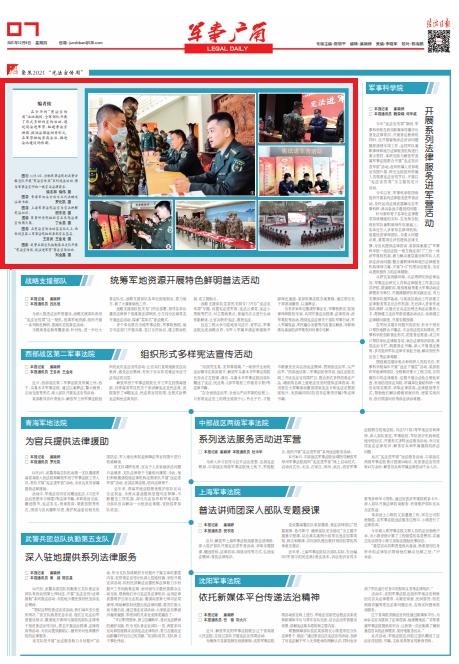 在今年的“憲法宣傳周”活動期間,全軍部隊開展了形式多樣的宣傳活動,通過送法進軍營、組建普法宣講團、提供法律援助等形式,在軍營掀起崇尚法治、推進法治建設(shè)的熱潮。