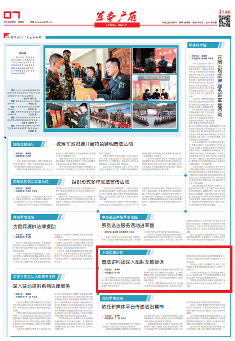 近年來,上海軍事法院結合部隊實際,先后編印《軍營中的民法典》普法讀本、訴訟知識宣傳手冊等多種學習資料;通過發(fā)放涉軍維權聯系卡片,深入部隊開展法律咨詢服務,有效維護部隊官兵合法權益。