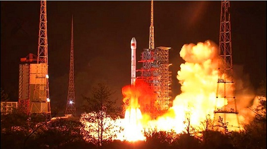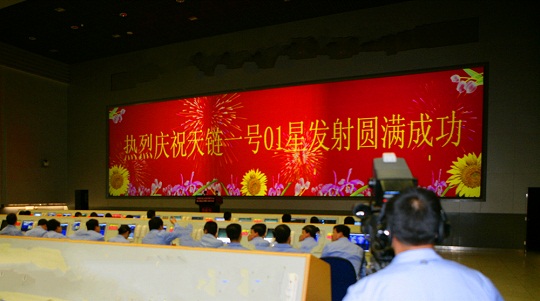 圖為天鏈一號01星成功發(fā)射大紅屏。