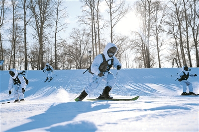 圖③:官兵在陌生地域展開滑雪訓練。高翔昊 攝
