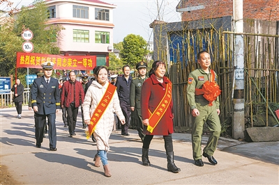 “袁偉真厲害啊,一年兩次立功!”“袁偉這么優(yōu)秀,我也想把兒子送到部隊(duì)去鍛煉鍛煉?!笨粗?duì)伍前方“一等功臣之家”和“二等功臣之家”兩塊熠熠生輝的牌匾,聞?dòng)嵹s來(lái)的鄉(xiāng)親羨慕之情溢于言表。