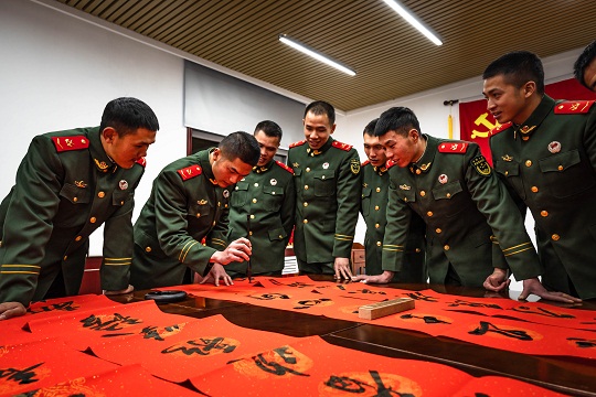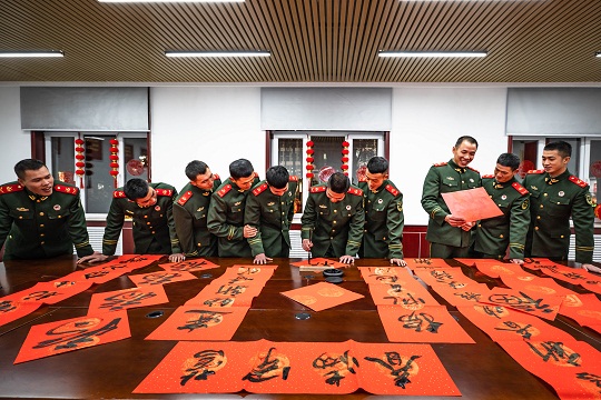 圖為官兵們在寫春聯(lián)。金玥林 攝