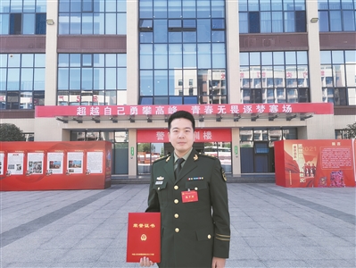 近年來(lái),他閱讀了《習(xí)近平論強(qiáng)軍興軍》《習(xí)近平新時(shí)代中國(guó)特色社會(huì)主義思想學(xué)習(xí)綱要》等書(shū)籍,梳理書(shū)中要點(diǎn)制成“口袋書(shū)”,經(jīng)常與戰(zhàn)友交流心得體會(huì)。功夫不負(fù)有心人,他的10余篇學(xué)習(xí)成果發(fā)表在報(bào)刊和網(wǎng)絡(luò)上,在總隊(duì)“忠誠(chéng)衛(wèi)士心向黨”演講比賽、優(yōu)秀“四會(huì)”政治教員比武中,多次奪魁摘冠,連續(xù)3年榮立三等功。