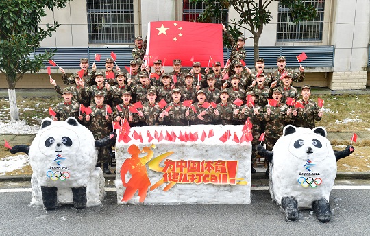 “為中國(guó)體育加油!為奧運(yùn)健兒加油……”2月8日,武警湖北總隊(duì)執(zhí)勤支隊(duì)官兵在休息時(shí)間用積雪堆出吉祥物冰墩墩,手持國(guó)旗集體打卡,為冬奧健兒加油,鼓勵(lì)大家學(xué)習(xí)奧運(yùn)精神,矢志練兵備戰(zhàn)。