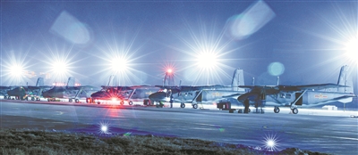 圖③:夜幕下,戰(zhàn)機列陣,待命出征。