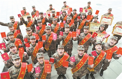 2月中旬,陸軍某旅開展學習《軍隊功勛榮譽表彰實施辦法》系列活動,并舉行年度表彰獎勵大會。百余名受表彰的官兵和先進單位代表登臺領獎,共享榮光,官兵扎根軍營、建功立業(yè)的熱情得到有效激發(fā)。本報特約通訊員梁志杰 攝