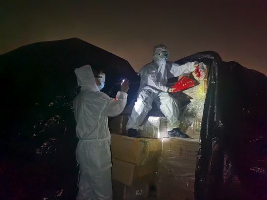 3月14日清晨6時(shí)許,該局鐵山港工作站接群眾報(bào)警稱,在北海市鐵山港區(qū)興港鎮(zhèn)附近海域有1艘擱淺木質(zhì)船舶,其上有大量貨物且被篷布遮蓋,疑為走私船舶。接警后,該站迅速調(diào)派兩隊(duì)執(zhí)法員對相關(guān)海域進(jìn)行海陸聯(lián)合搜查。上午9時(shí)許,海警執(zhí)法員在興港鎮(zhèn)淡水口村附近海域發(fā)現(xiàn)該艘擱淺木船,隨即對現(xiàn)場進(jìn)行封控,并通知防疫部門進(jìn)行防疫消殺。當(dāng)日晚8時(shí)許,經(jīng)防疫消殺后現(xiàn)場檢查,木船上裝載有“中華”“荷花”“芙蓉王”等品牌香煙一批,現(xiàn)場未發(fā)現(xiàn)該木船及所裝載香煙的任何相關(guān)合法手續(xù),亦無人對木船及香煙主張權(quán)利。因涉嫌走私,海警執(zhí)法員依法現(xiàn)場查扣涉案木船1艘,查獲涉嫌走私香煙12576條。