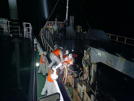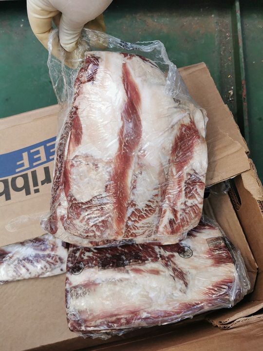 3月30日,涉案走私團(tuán)伙準(zhǔn)備在山東威海海域?qū)嵤┳咚椒缸锘顒?dòng)。得知線索后,山東海警局立即派遣威海海警局執(zhí)法艦艇前往目標(biāo)海域開展查緝。在執(zhí)法艦艇發(fā)現(xiàn)嫌疑船舶并靠近過(guò)程中,該走私船舶突然加速意欲逃離,海警執(zhí)法員果斷將其逼停,并組織船舶登檢。經(jīng)查,該船于3月23日自韓國(guó)裝載無(wú)合法來(lái)源和未經(jīng)檢驗(yàn)檢疫的日本進(jìn)口和牛肉后,關(guān)閉AIS設(shè)備進(jìn)入威海海域,被山東海警局當(dāng)場(chǎng)查獲。