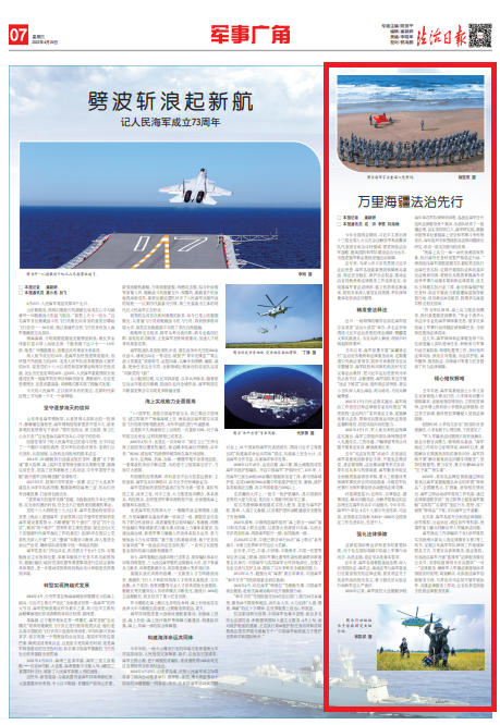 近年來,海軍各級(jí)著眼備戰(zhàn)急需,深入宣傳國際法、海洋法、海戰(zhàn)法等與海軍備戰(zhàn)打仗緊密相關(guān)的法律法規(guī),普及刑法關(guān)于危害作戰(zhàn)的相關(guān)條文,著力強(qiáng)化官兵依法行動(dòng)和軍法從嚴(yán)意識(shí)。