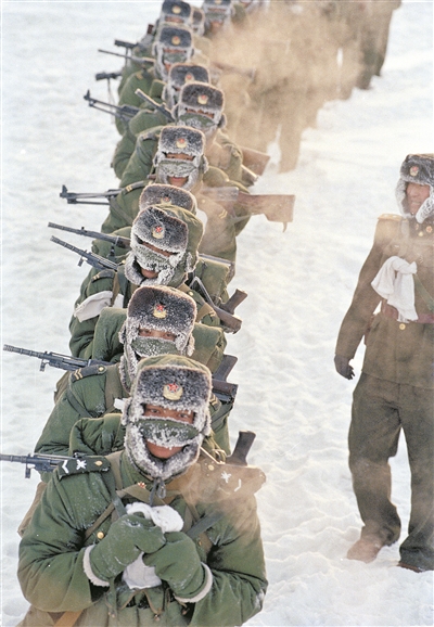 冰,是北國邊陲最獨特的一道風(fēng)景。北疆的冰雪因士兵而獲得了生命。圖為在敲響世紀之交的鐘聲時,官兵行走在祖國的北疆邊防線上。馮凱旋 攝