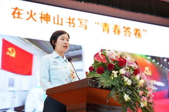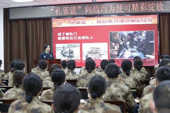 圖為高銳給新聘文職人員談成長歷程和個人認(rèn)識。汪學(xué)潮 攝