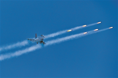 戰(zhàn)鷹呼嘯,炮火紛飛。5月下旬,空軍航空兵某旅出動(dòng)數(shù)架戰(zhàn)機(jī),赴某空域開(kāi)展多型武器實(shí)彈射擊訓(xùn)練。