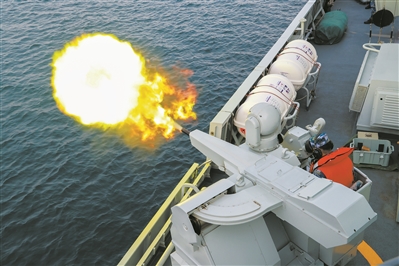 上圖:戰(zhàn)艦蹈海。下圖:炮火怒吼。張震 攝影報道