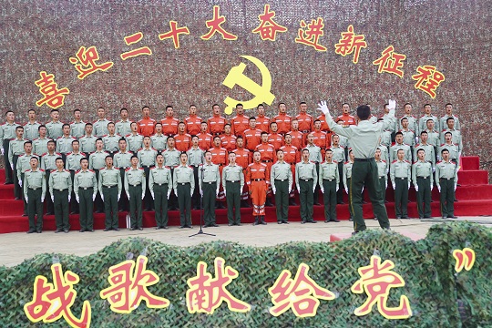 武警青海總隊(duì)機(jī)動(dòng)二支隊(duì)演訓(xùn)場(chǎng)上,官兵們跨彈坑、攀云梯、翻高墻……突然一聲哨響:全體集合!大家集體重溫入黨誓詞。之后,官兵在寫有“永遠(yuǎn)聽黨話,堅(jiān)定跟黨走,喜迎二十大,奮進(jìn)新征程”的橫幅上寫下自己的名字。