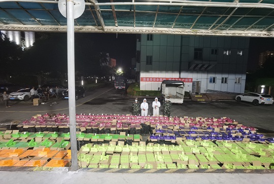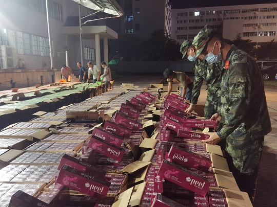 針對臺風(fēng)“暹芭”剛過境,走私分子可能會心存僥幸利用較低潮位從事走私活動的現(xiàn)實情況,該局科學(xué)研判,嚴(yán)密部署執(zhí)法力量加強(qiáng)轄區(qū)管控。7月6日晚23時許,在轄區(qū)海域蹲守的海警執(zhí)法員發(fā)現(xiàn)有不明“大飛”蹤跡,經(jīng)過圍追堵截最終將涉嫌走私“大飛”一舉抓獲,現(xiàn)場抓獲涉案嫌疑人兩名,查獲涉嫌走私香煙一批,該船后置5臺“雅馬哈”機(jī)頭,總馬力超1000匹。經(jīng)合浦縣疾控中心對上述涉案物品及人員進(jìn)行消殺、核酸檢測,結(jié)果均為陰性。經(jīng)清點,查獲美國“百樂”牌香煙約400件,共計1.9萬余條,總案值約500萬元。目前,該案件正在進(jìn)一步深挖擴(kuò)線中。