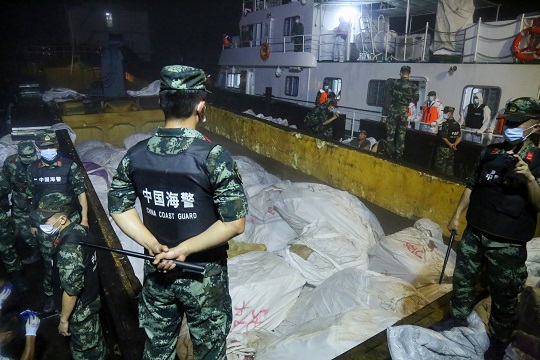 7月15日,山東煙臺(tái)海警局成功查獲一起涉嫌走私凍品案,現(xiàn)場(chǎng)抓獲嫌疑人27人、查扣涉嫌走私凍品船舶1艘、涉案車(chē)輛15輛,查獲凍品約300噸。