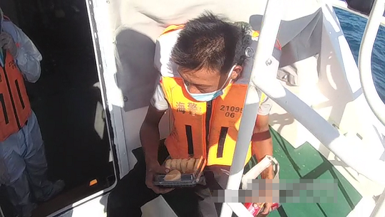 圖為執(zhí)法員安撫該遇險(xiǎn)漁民并提供飲水食物。